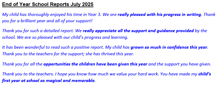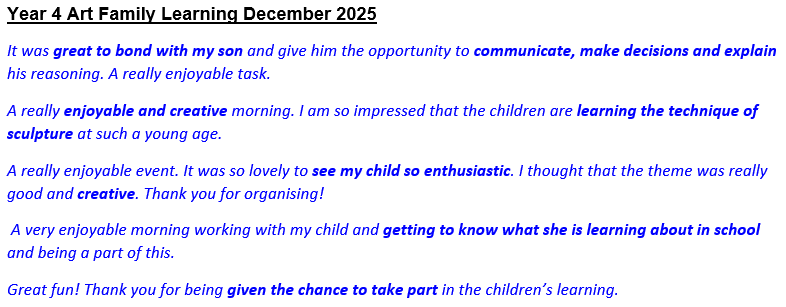 Parents play a huge part in our school community and we truly value the impact this has on the children. Here at Leasowes we provide many opportunities for our parents to come into school. They are invited in for Parent’s Evenings, performances, workshops and family learning to name a few. We are always happy to receive feedback and below is what some of our parents say about us…