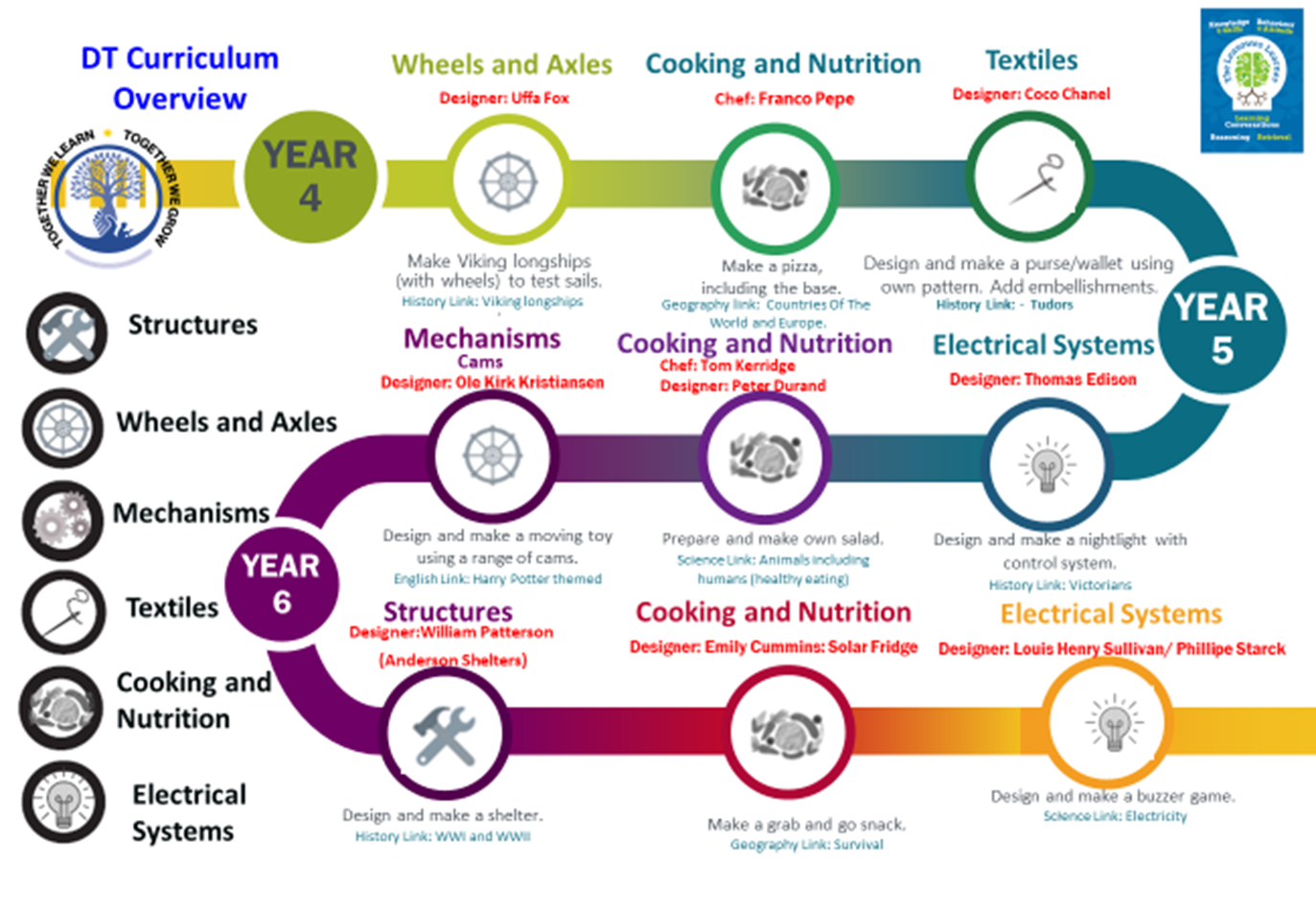 Our pupils develop knowledge, understanding and skills to enable them to tackle real problems and use a wide range of tools safely. They explore the man-made world and discuss how we live and work within it. They work individually and with others to create products of a high standard, whilst demonstrating creativity and innovation. All pupils have opportunities to explore and evaluate existing products and design and make their own products. Pupils are encouraged to reflect on their designs as part of the iterative process and make changes to their designs, showing resilience and the ability to overcome problems. They learn the principles of nutrition, healthy eating and how to cook. Many of the jobs our youngest children will go on to do, as adults, do not yet exist. For this reason, we are committed to inspiring our pupils in the world of technology. Along with the inventors and designers that pupils learn about in lessons, pupils are also introduced to significant individuals in the world of design in termly assemblies. Our curriculum will help to equip pupils with the necessary skills to prepare them for an ever-changing world.